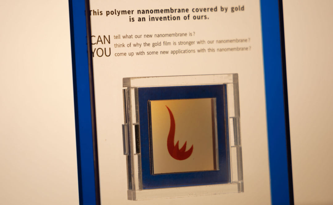 礼盒中的“金色薄膜”,是整个探索之旅的起点。这项港科大(广州)科研团队的重磅发明,由世界上最坚韧的超高分子量聚乙烯纳米膜为基体和黄金“融合”而成,金色薄膜仅有头发丝1/300厚度,却具有超过不锈钢25倍的比强度,同时还透明、透气、防水,纳米间的孔径大小也可自由调节。纳米材料可以独立用作宏观的承载结构。