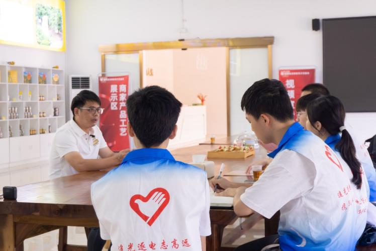 在实践征途中,“智翼兴农”突击队首先走进了无核黄皮省级现代农业产业园,这里,是他们了解产业现状、探索合作契机的第一站。他们先后走访了广东康美先食品有限公司、广东亲群食品科技有限公司、郁南县富赢田田圈生态农业有限公司等企业,通过与企业负责人深入交流,不仅见证了无核黄皮从田间到车间的华丽蜕变,而且感受到科技对于提升产品附加值、拓宽销售渠道的重要性。双方就无人机巡园技术在原料品质监控、源头追溯等方面的应用前景进行了热烈讨论,共同绘制了一幅科技助农兴企的美好蓝图。