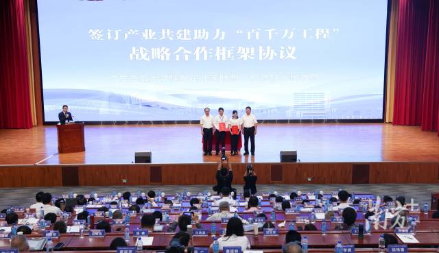 会议现场,九游注册校友企业家联盟与东源签订产业共建助力“百千万工程”战略合作框架协议,8家广工大校友企业与东源县仙塘镇人民政府签订“一企一村”结对共建协议,政校企三方进一步深化结对合作,把合作共建落到具体项目上、落到解决难点堵点问题上。