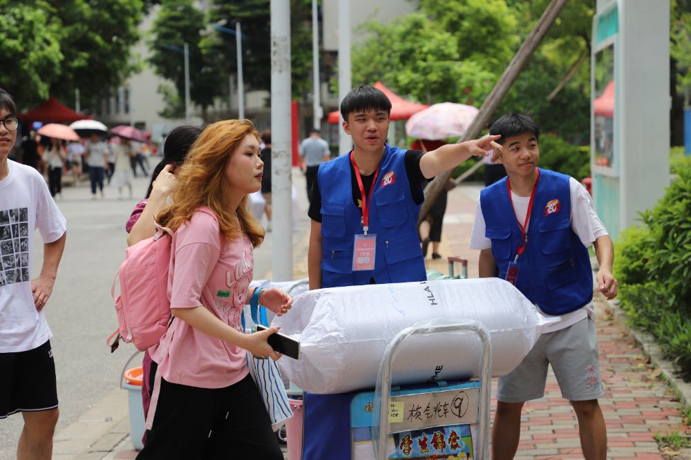 各校区随处可见志愿者提供指引服务、专门设置的家长休息区,马克思主义学院向新生赠送专业经典原著、软件学院设置了新生打卡墙、自动化科学与工程学院为新生设置笑脸画板、吴贤铭智能工程学院邀请新生给未来的自己写一封信、学生饭堂早就准备好各式各样的饭菜……