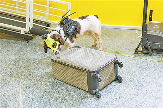 在广州地铁,有着“全国功勋犬”荣誉的警犬“可乐”,最近有了一款新“皮肤”——“汪汪特工”智能装备。随着训导员一声令下,“可乐”戴着像面罩一样贴合的智能头盔,身着战术马甲,在数个箱包中绕圈踱步后,精确识别出了藏有违禁品的箱包。