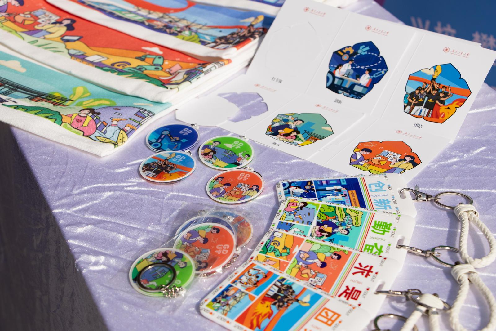 现场还设有五个特色环节:知校·情深叙怀:“我和广工的故事”视频共创;绘校·聚力添彩:“我为GDUT添新彩”彩绘共创;爱校·心心相印:“I ❤ GDUT”文创共创;荣校·光影芳华:“我与广工合个影”照片共创;兴校·攀撑永续:校训主题系列文创产品兑换。广工师生以校训为引,畅谈“我与广工的故事”,讲述“我爱广工的理由”。活动主背景由路过学生和志愿者共创完成,现场还有文创共创环保袋、明信片、卡包、钥匙链等校训主题创意文创派发,各摊位前人潮涌动,同学们用双手创作出独属于广工记忆的青春文创。