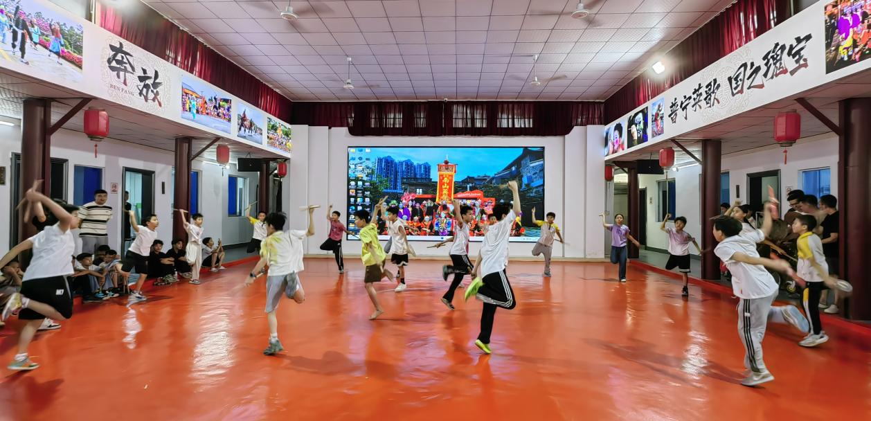 南山英歌传承基地年轻队员们训练时的场景