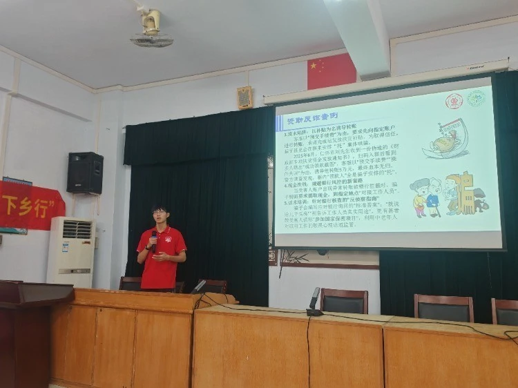 实践团深入圣堂镇圣堂中学为青少年开展复合性科普,结合勤工助学、助学金申请等案例,拆解“奖、助、贷、勤、补、免”体系要点,融入资助反诈知识。学生通过反诈小剧场和政策知识抢答,加深对资助政策的理解,提升自我防范意识,筑牢政策保障和安全防护双重防线。同时,“政策解读 + 安全防护”的校地宣教模式,让当地学生掌握助学路径,助家庭经济困难学生坚定求学信心,为青春成长护航。