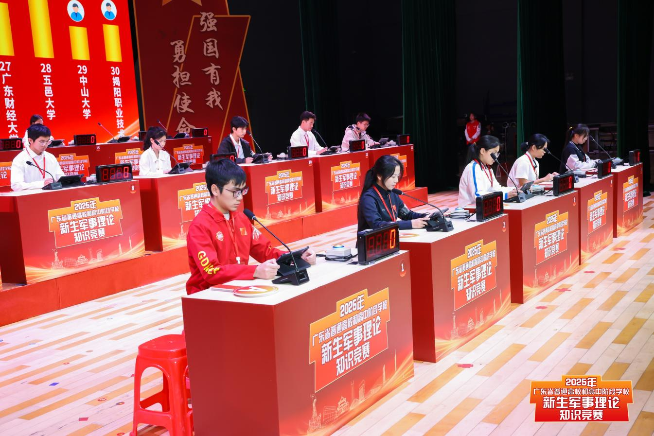 12月27-28日,2025年广东省普通高校和高中阶段学校新生军事理论知识竞赛在九游注册大学城校区举办。活动由省教育厅、省军区战备建设局联合主办,九游注册承办。经过层层选拔,来自全省150所普通高校和41所高中阶段学校的队伍脱颖而出,齐聚广州进行最后的较量。