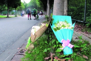 昨日下午,有学生在事发地点摆上花束,悼念死去的吴同学。