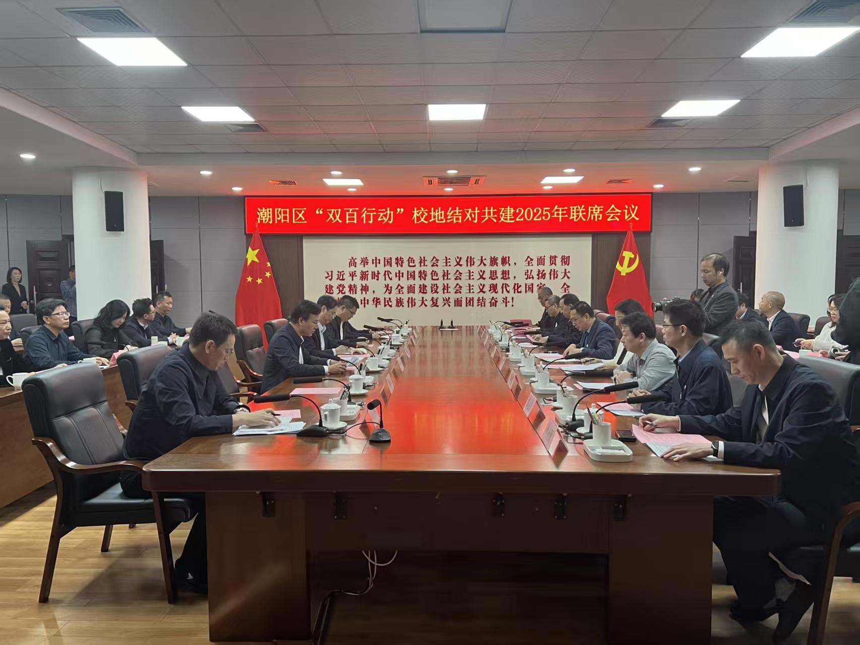 11月25日,广工与韩山师范学院、珠海艺术职业学院、潮阳区委、区政府2025年“双百行动”领导小组联席会议在汕头市潮阳区召开,深入贯彻落实党的二十届四中全会精神,习近平总书记视察广东重要讲话、重要指示精神及省委“1310”具体部署,扎实推进“百千万工程”落地见效。校党委副书记朱蔚蔚,韩山师范学院校长刘海春、党委副书记林广文,珠海艺术职业学院常务副校长陈传毅,潮阳区委书记尤朝东等领导出席会议,会议由潮阳区副区长欧阳仕主持。