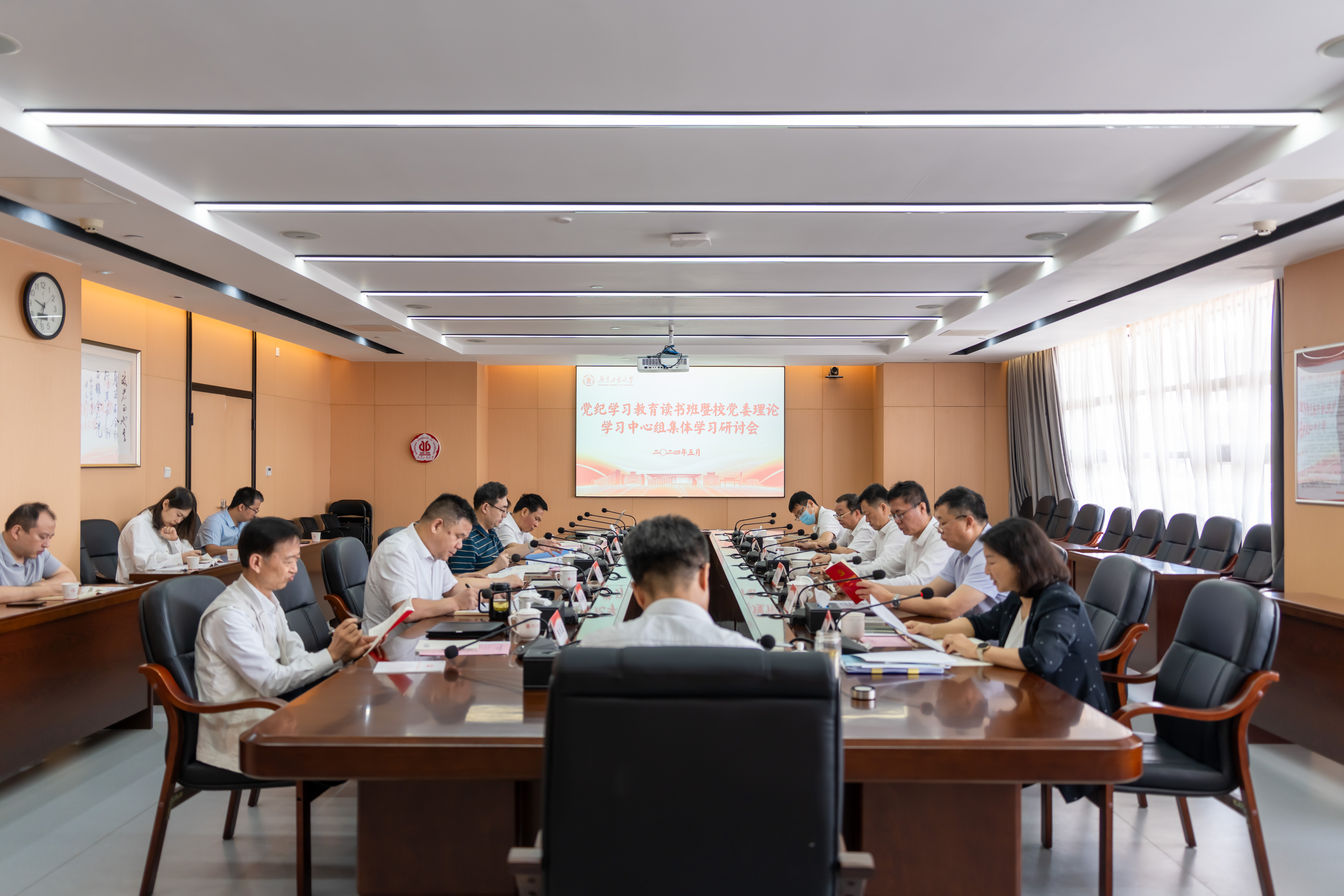 5月17日上午,学校党纪学习教育读书班举行第二次集体学习,专题学习研讨《中国共产党纪律处分条例》(以下简称《条例》)。校领导、校党委理论学习中心组成员参加学习。校党委书记胡钦太主持学习会并作领学,党委副书记陈良友、朱蔚蔚,党委常委、副校长杜承铭、王成勇分别领学了《条例》部分章节并交流学习体会,党委办公室、校长办公室,纪检监察室主要负责人分别作交流发言。
