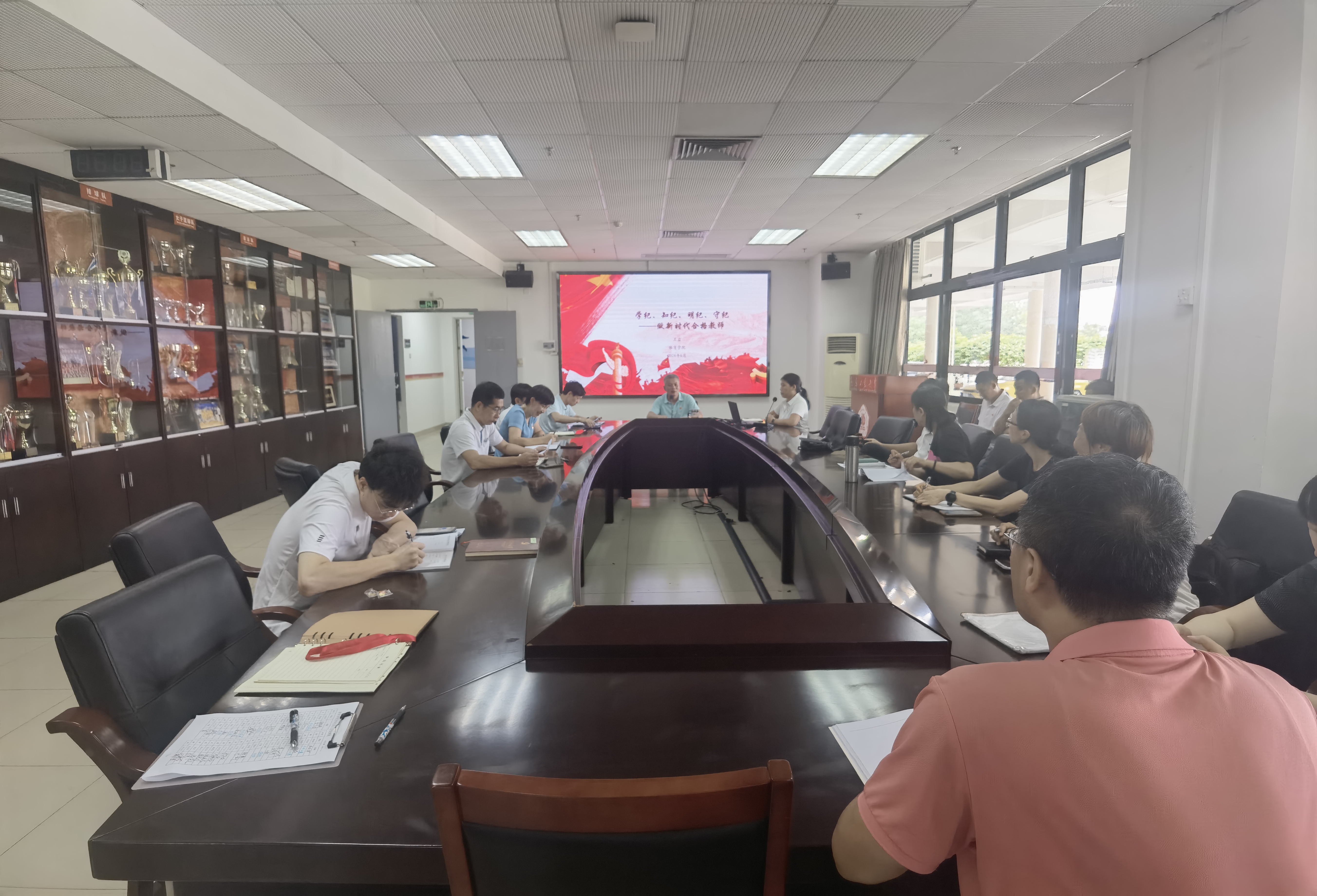 学院党委纪检委员王岩老师以《学纪、知纪、明纪、守纪——做新时代合格教师》为题,结合《中国共产党纪律处分条例》,围绕政治纪律、组织纪律、廉洁纪律、群众纪律、工作纪律、生活纪律的主旨要义、规定要求及违纪处分等内容,通过剖析体育系统和教育系统多个警示案例,引导学院党员教师要自觉做“学高为师,身正为范”的合格教师。