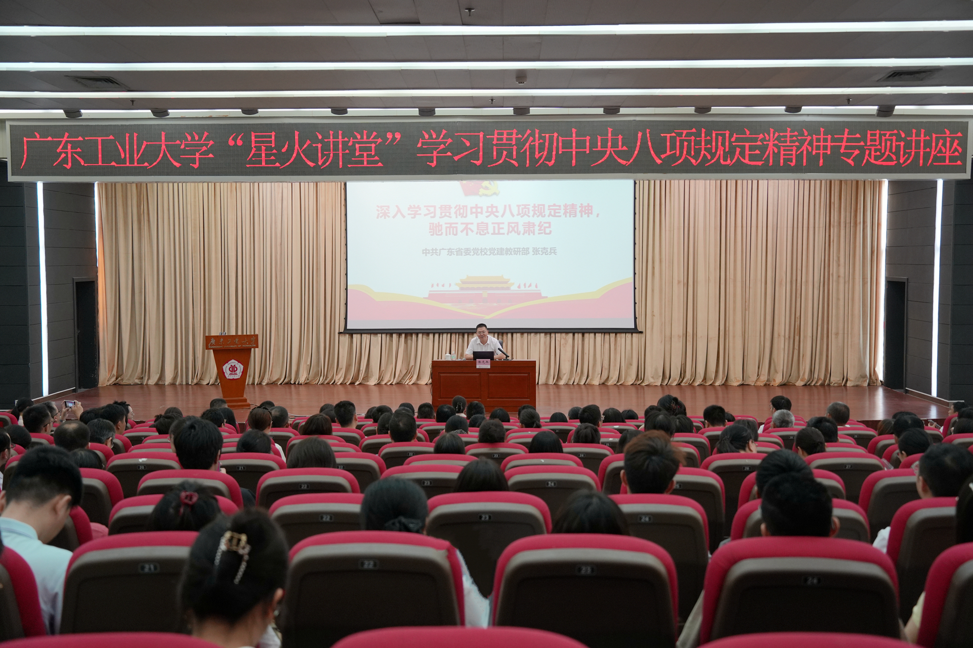 4月23日下午,学校举办“星火讲堂”,邀请中共广东省委党校党建研究中心副主任,广东省习近平新时代中国特色社会主义思想研究中心特约研究员张克兵副教授作专题讲座,为基层党员和年轻干部深入学习中央八项规定及其实施细则精神和习近平总书记关于党的作风建设的重要论述进行学习辅导。讲座由校党委副书记朱蔚蔚主持。全校正科职干部、党支部书记和党员代表近500人参加集中学习。