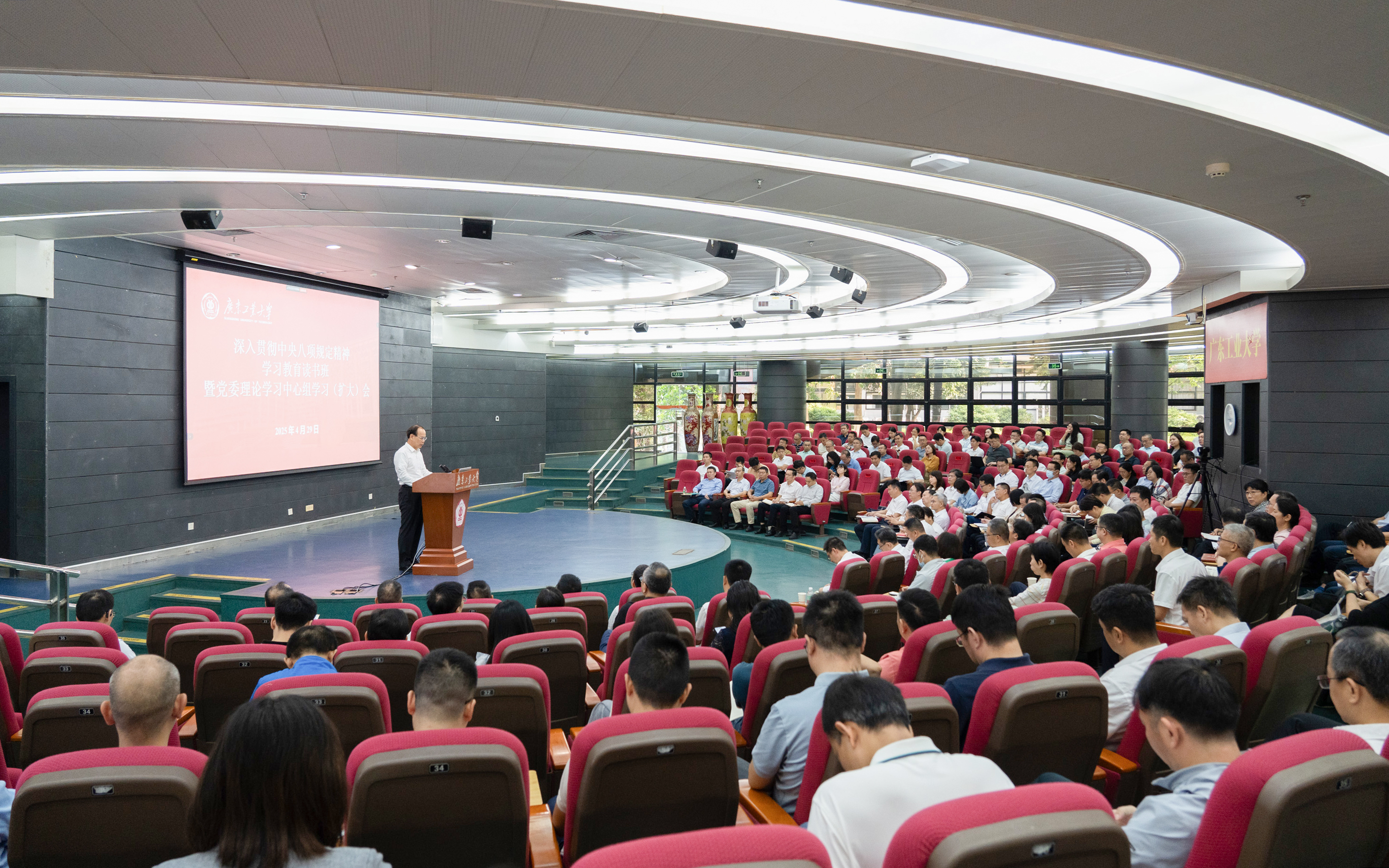 本次读书班主会场设在大学城校区,其他校区设视频分会场。学校中层干部及学习教育工作专班成员近300人参加了此次学习。读书班还将以个人自学、集体研学、专家导学、观看专题片等方式,持续推进习近平总书记关于作风建设的重要论述和中央八项规定及其实施细则精神入脑入心、见行见效。