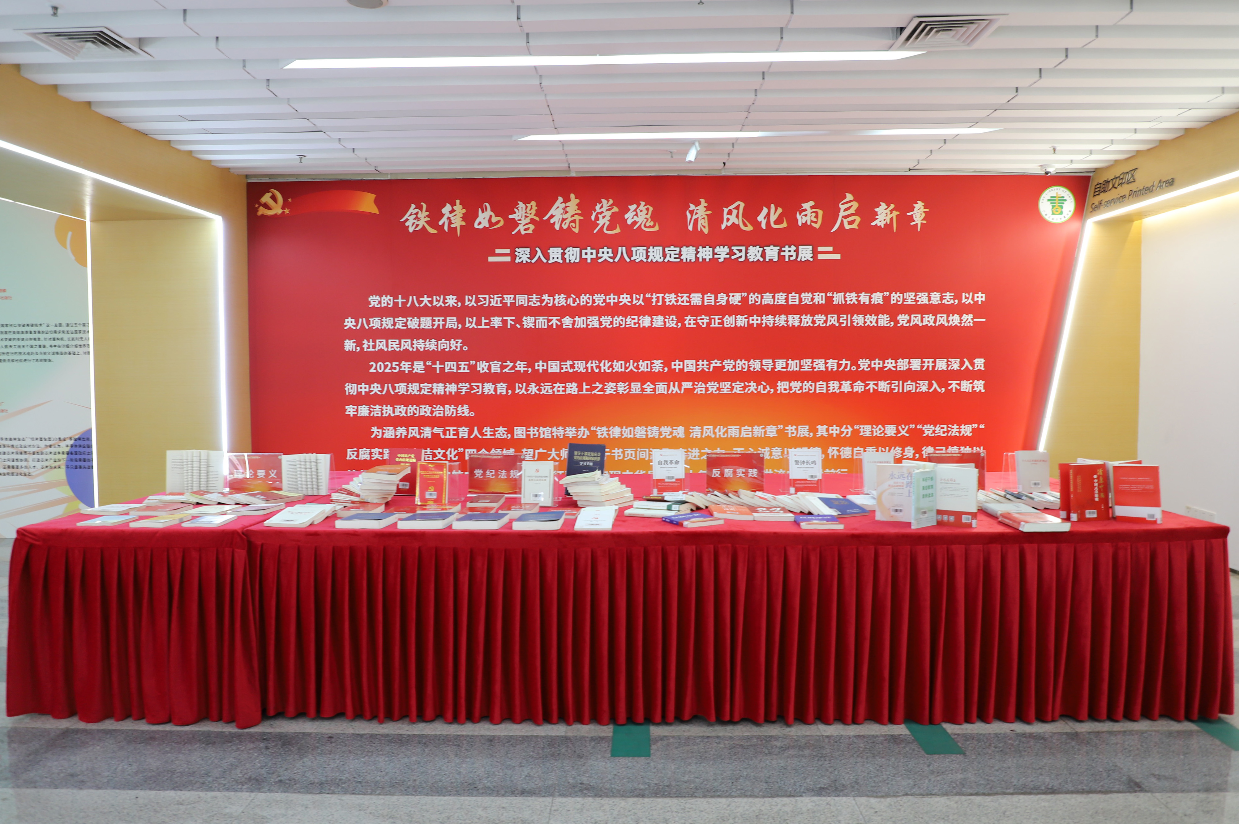 近日,学校图书馆依托丰富馆藏资源,在大学城、龙洞、东风路三校区馆同步推出“铁律如磐铸党魂 清风化雨启新章”深入贯彻中央八项规定精神学习教育书展,以书籍资料特别是领导人经典著述为载体,为全校师生搭建系统化、沉浸式的学习平台,推动中央八项规定精神入脑入心、见行见效。