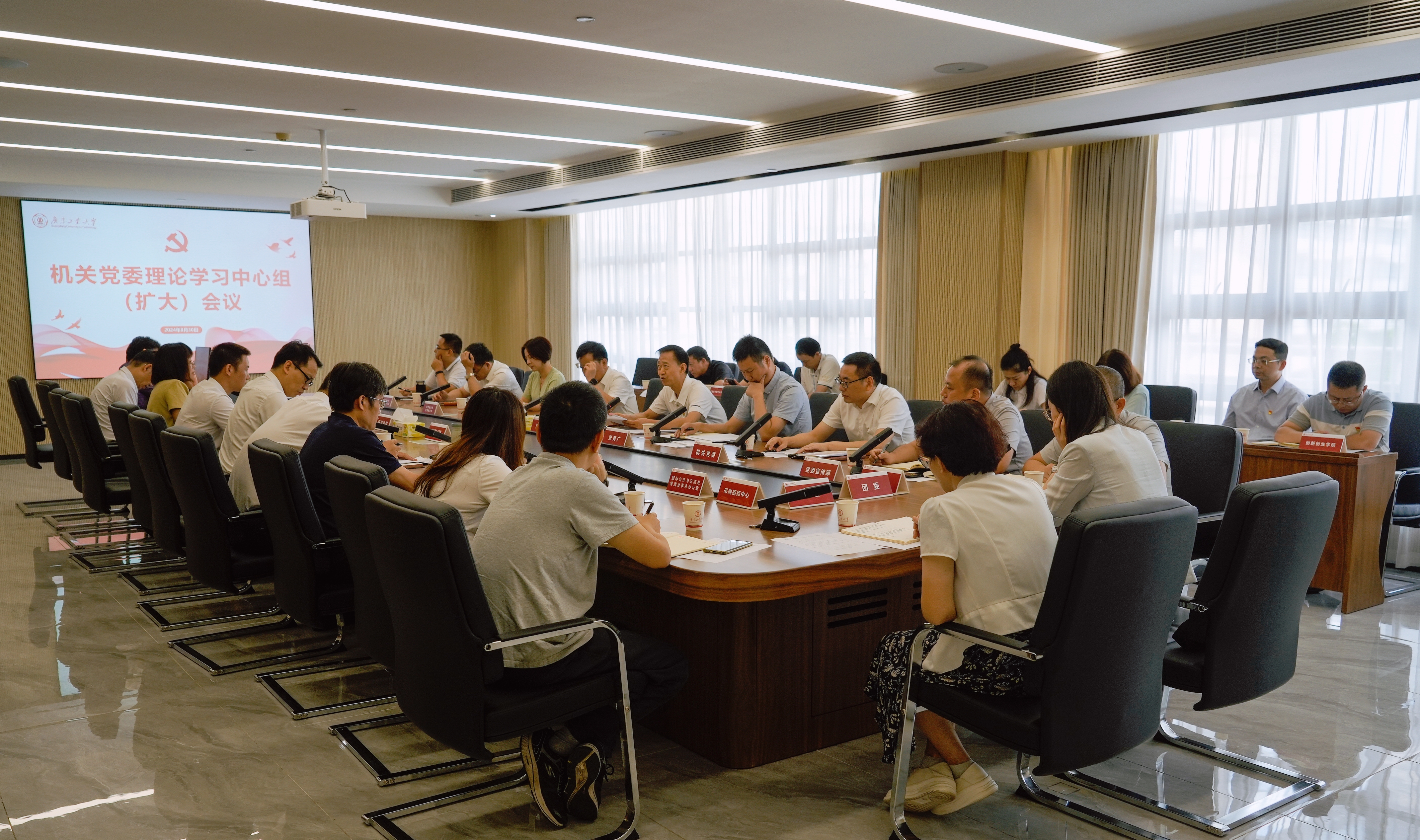 8月30日,机关党委在大学城校区召开理论学习中心组(扩大)会议,学习贯彻党的二十届三中全会精神和习近平总书记就中央和国家机关学习贯彻党的二十届三中全会精神 推动机关党建高质量发展的重要指示精神、在中央全面深化改革委员会第六次会议上的重要讲话精神,传达学习学校党委学习贯彻党的二十届三中全会精神部署要求,推动在以高质量党建促进高质量发展中展现新担当新作为。学校党委副书记陈良友出席会议并讲话,机关党委委员、机关各党支部书记参加会议。