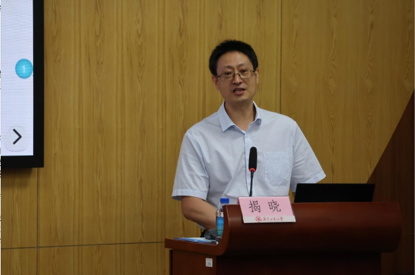 揭晓教授以《擘画新蓝图,夺取新胜利:奋力谱写中国式现代化建设新篇章》为题,作学习贯彻习近平总书记重要讲话和党的二十届四中全会精神辅导报告。他从历史维度系统梳理了我国从“一五”计划到“十四五”规划的奋斗历程,深入阐释了“十五五”时期是中国式现代化发展承前启后的关键阶段,对夯实发展基础、推进强国建设具有重要意义。他指出,党的二十届四中全会提出的“指导思想、六大原则、七方面目标、十二项重要部署”构成有机统一的逻辑体系,为全面建设社会主义现代化国家提供了行动指南。他系统解读了全会对“十五五”时期经济社会发展的顶层设计与战略部署。