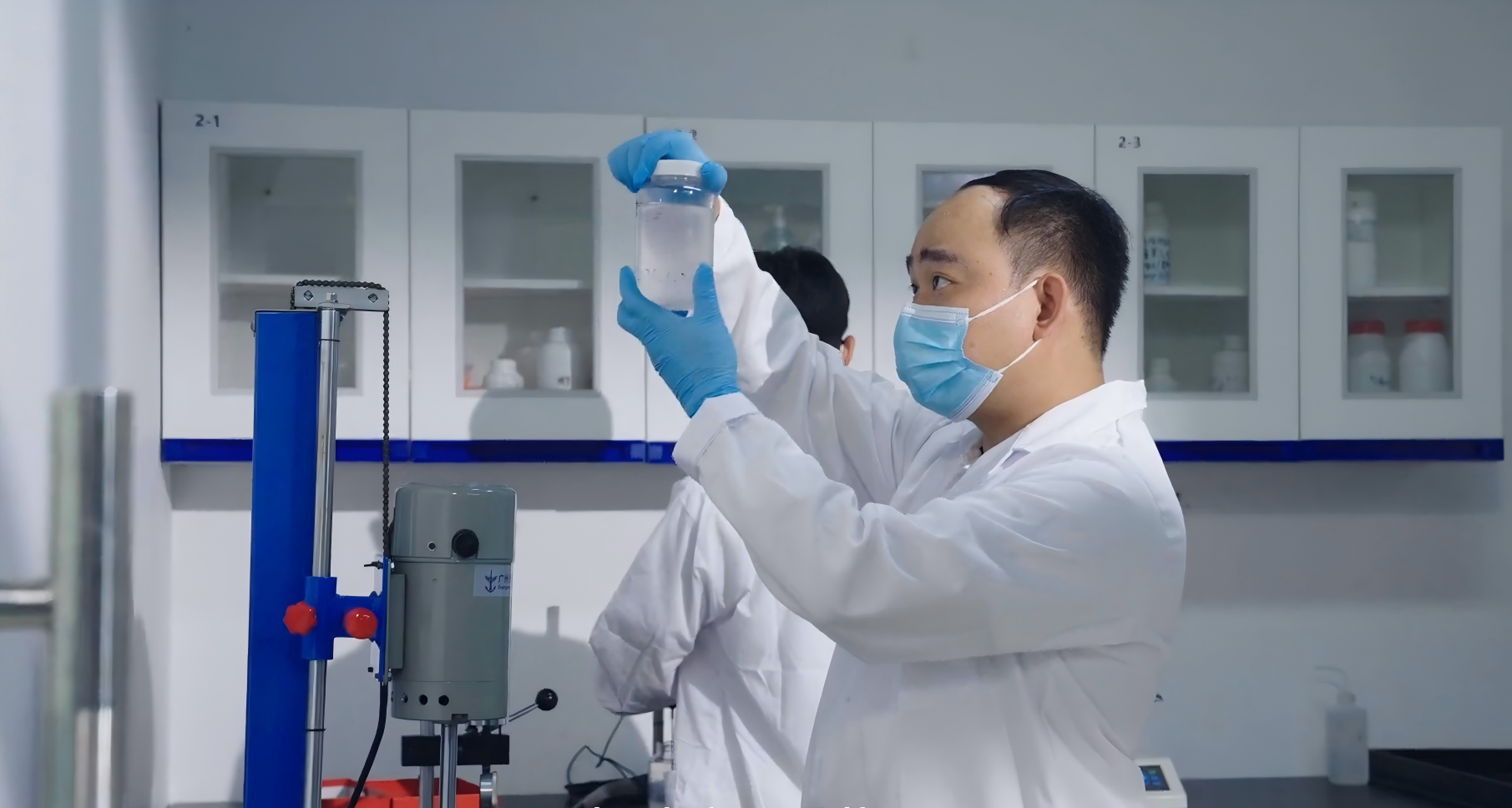 创新大赛金奖项目“真粘新材—胶粘剂配方CRO解决方案供应商”团队成员开展科研实验